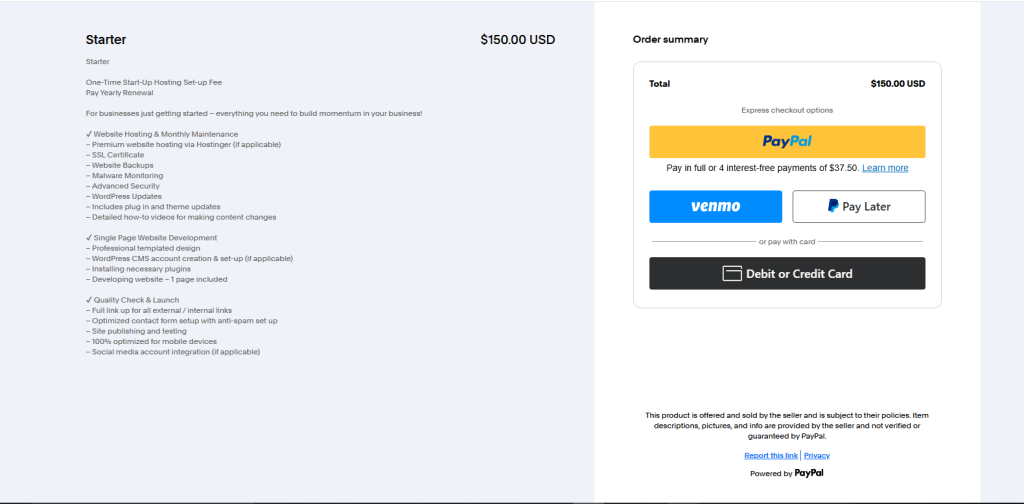 - 🌟You pay one-time $150.00 hosting + set-up fee — Renews for $138.88/year if you wish to keep the website.